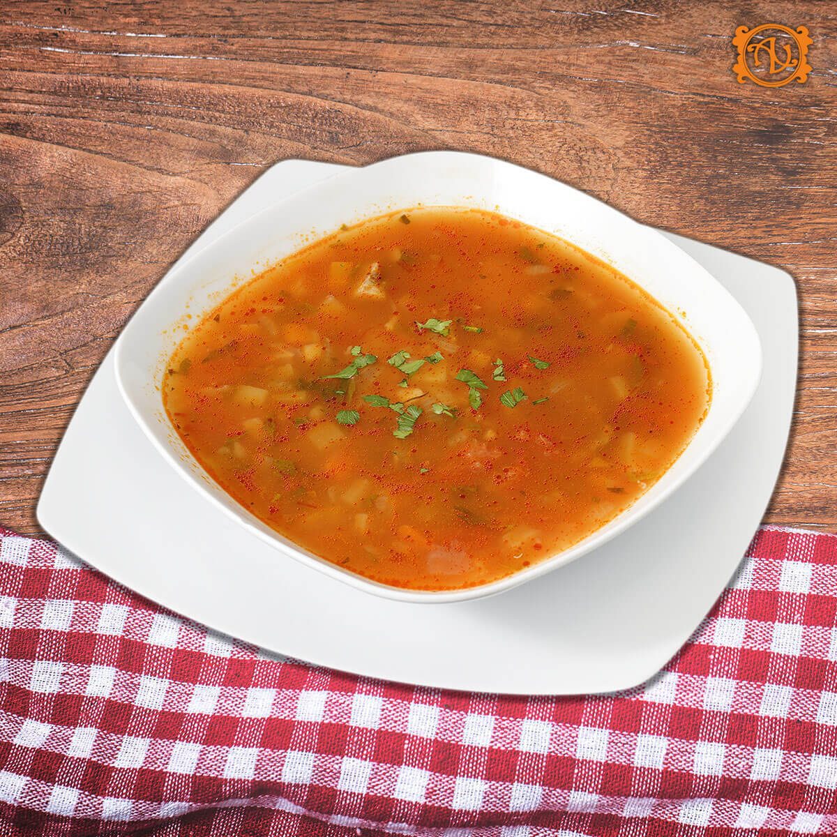 pulpă vită**, țelină, morcov, pătrunjel rădăcină, ardei gras, ceapă, roșii, pătrunjel verde 300/80g