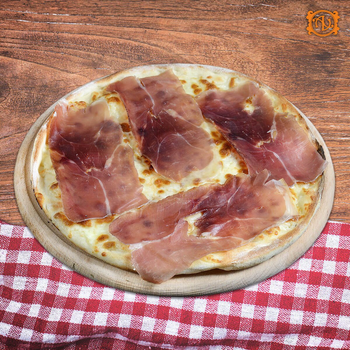aluat, sos, mozzarella, prosciutto
